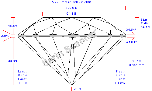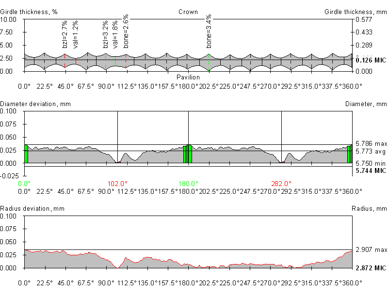 Girdle to table-culet line offset | 0.19, % | 0.011, mm |