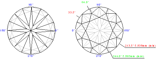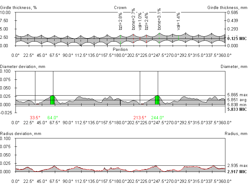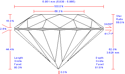 Girdle to table-culet line offset | 0.99, % | 0.058, mm |
