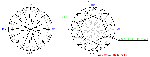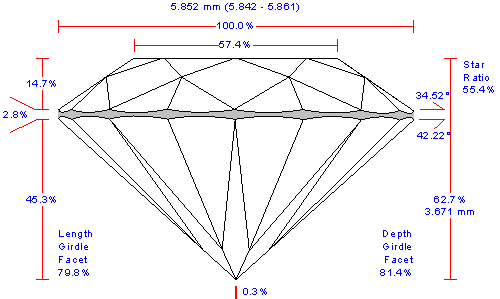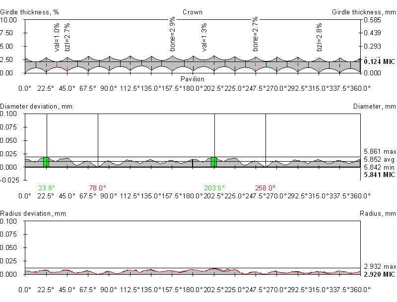 Girdle to table-culet line offset | 0.16, % | 0.009, mm |