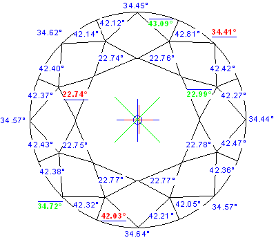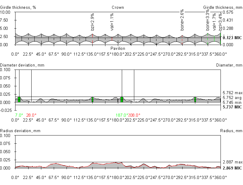 Girdle-Table offset by table axis | 0.20 ± 0.20, % | 0.012 ± 0.011, mm |