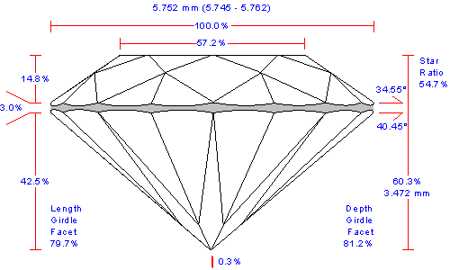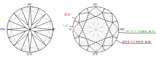 Girdle to table-culet line offset | 0.60, % | 0.035, mm |