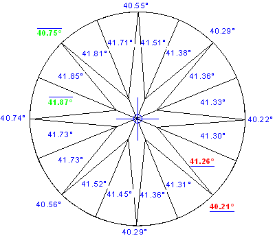 Azimuths deviation from ideal, ° |
