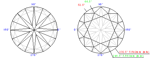 Lower girdle facets / Halves | 0.10 | 0.13 | -0.04 | 0.09 | -0.03 | 0.08 | 0.14 | 0.00 |