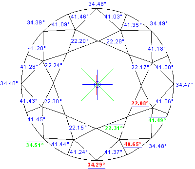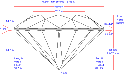 Girdle to table-culet line offset | 0.35, % | 0.020, mm |