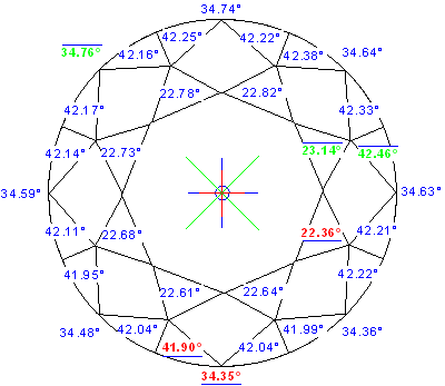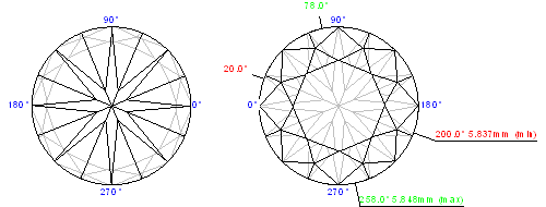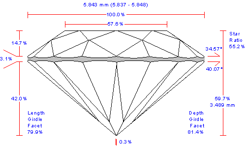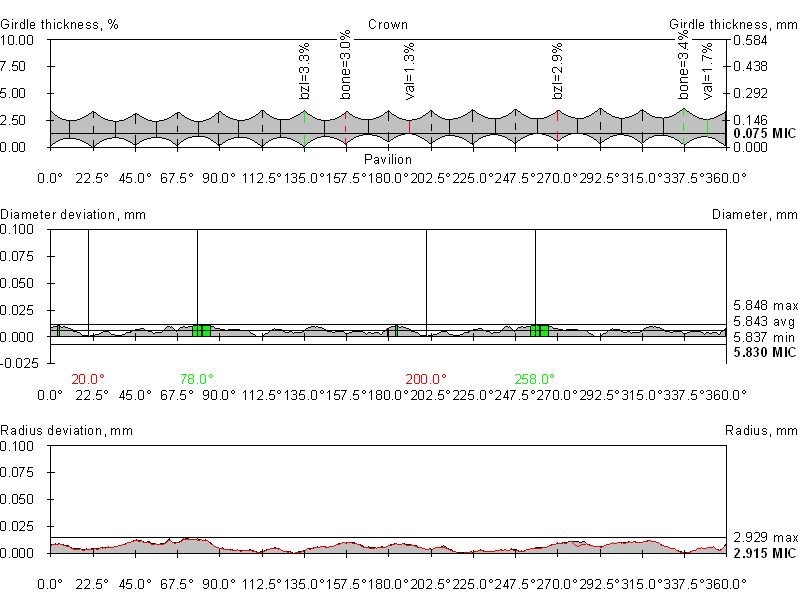 Girdle to table-culet line offset | 0.23, % | 0.014, mm |