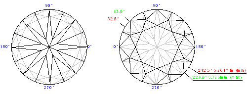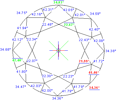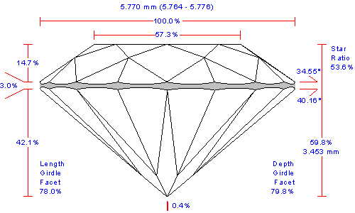 Girdle to table-culet line offset | 0.07, % | 0.004, mm |