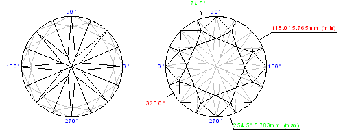 Girdle to table-culet line offset | 0.81, % | 0.047, mm |