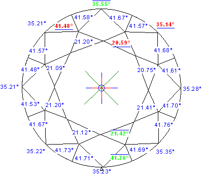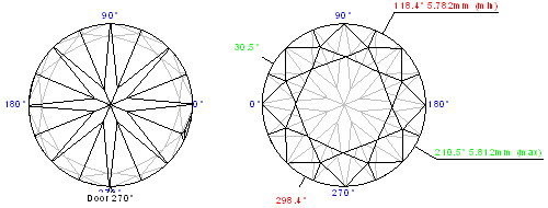Girdle-Culet offset by table axis | 0.18 ± 0.22, % | 0.010 ± 0.012, mm | ||||||