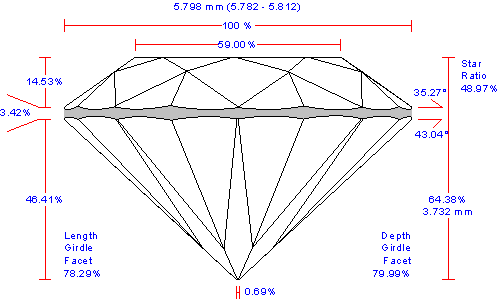 Diameter | Crown height | Pavilion depth | Total height | Table | Culet | Girdle Bezel | Girdle Bone | Girdle Valley |