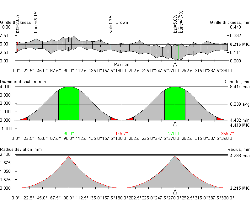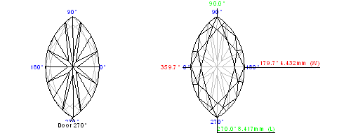 Lengh-wise culet shift ratio | 4.227 mm, 95.37 % | 4.191 mm, 94.56 % |