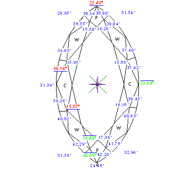 Pavilion point azimuth (P) | N/A | N/A | ||||||