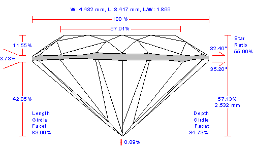 Girdle to table-culet line offset, % | 1.45 | |||||||