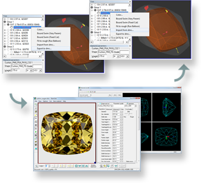 In the beginning of optimization process, a preliminary solution is allocated in the Oxygen. Then allocated diamond from the Oxygen is passed into the DiamCalc Software for analysing and optimizing its colour.