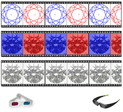 - Red-blue glasses, interlaced polalized monitor and TV, NVIDIA 3D Vision, LG & Samsung TV stereo techology, anamorphic stereo, etc.