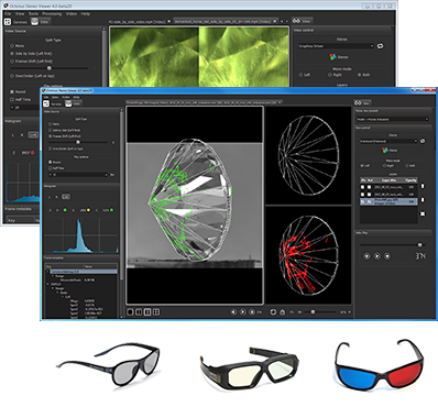 The new Stereo movie viewer supports playing DiamCalc stereo movies with realistic rendering of inclusions and depth-of-field effect, lens or human eye modelling. At the moment versions of DiamCalc available for download do not support rendering inclusions and export of FLM stereo movies. It is coming on the next versions. But you can see examples of new DC stereo movies here.