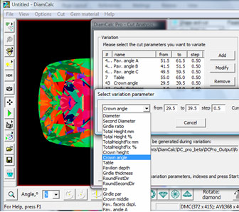 For several years the diamond industry has designed most of its new diamond cuts using various computer aided design software like GemCad. The virtual models of potential new diamond cuts are then transferred into DiamCalc software. Designers check the appearance and light performance with DiamCalc photo-realistic images and "virtual" cut assessment tools like Hearts and Arrows viewers, ASET and Ideal-Scope. By trial and error designers then optimize the proportions. OctoNus's new DiamCalc 3.0 vastly improves this process.