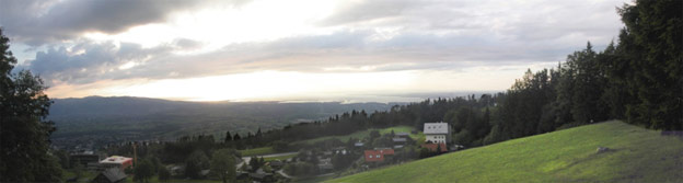 A lighting environment can be defined by a high dynamic range panorama (also referred to as HDR panorama). Luminance or radiance observed in the real world can usually be stored in special high dynamic range images that correspond to actual physical values. This additional information makes high dynamic range images that are different to traditional digital images that may appear on a monitor or on a paper print. For example in the photo image above the bright parts of the sky radiate much more light than is seen in a regular photograph, and such intense light sources can create a bloom or flare in a gemstone.
