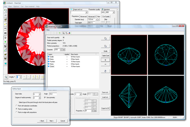 For companies active in designing special cuts such as many Sightholders, Tiffany and Swarovski, the new cut designer tool enables the creation of parametric models with tied proportions; each and parameters can be varied. This overcomes a problem in previous computer aided design software that required the laborious creation of separate models for every new proportion set.