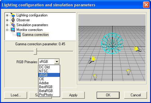 - Select from menu Options / Lighting / Customize.../ Monitor correction / Gamma correction
