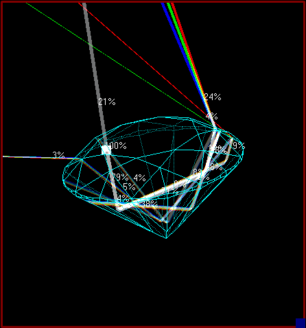 DiamCalc has the ray tracing mode showing the users how the ray of light travels trough the diamond