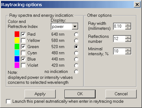 Minimum intensity, % - defines the minimum intensity of shown rays. All rays with less intensity are not shown.