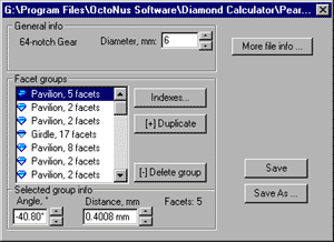 library and see its appearance with the DiamCalc. You can even adjust the size of the diamond and position of every facet.