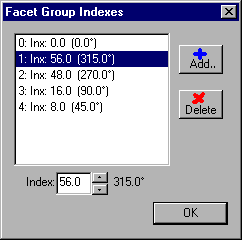 "Facet groups". With every group you can change the elevation angle and the distance to the facet plane from the