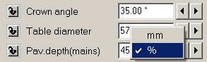 DiamCalc allows choose the most convenient representation form or measurement units for some parameters