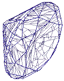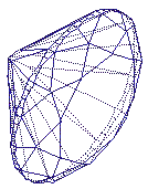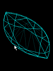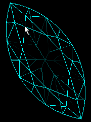 This mode shows the diamond as a three-dimensional framework. Visible and invisible edges are seen as solid and dashed lines, respectively. Facets are now drawn, color and illumination is not taken into account. This option is useful for the visual determination of proportions. This mode is the default one.