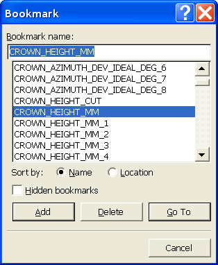 mark it and click button "Go To". The cursor will place to the position with obtained bookmark. Remove the bookmark.