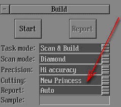 princess" in the field "Cutting" of the panel "Scan polished diamond"