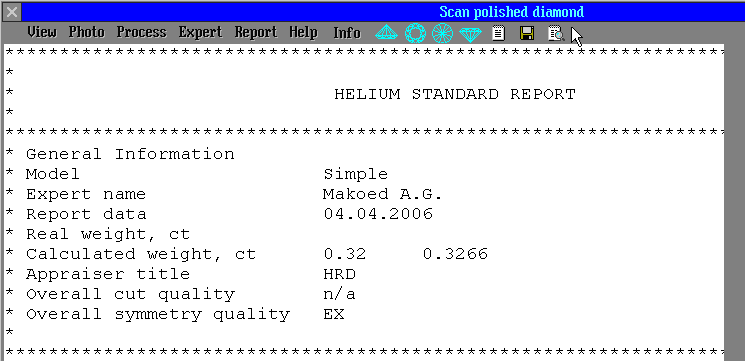 the first 6 strings of menu "Report" of "Scan polished diamond"