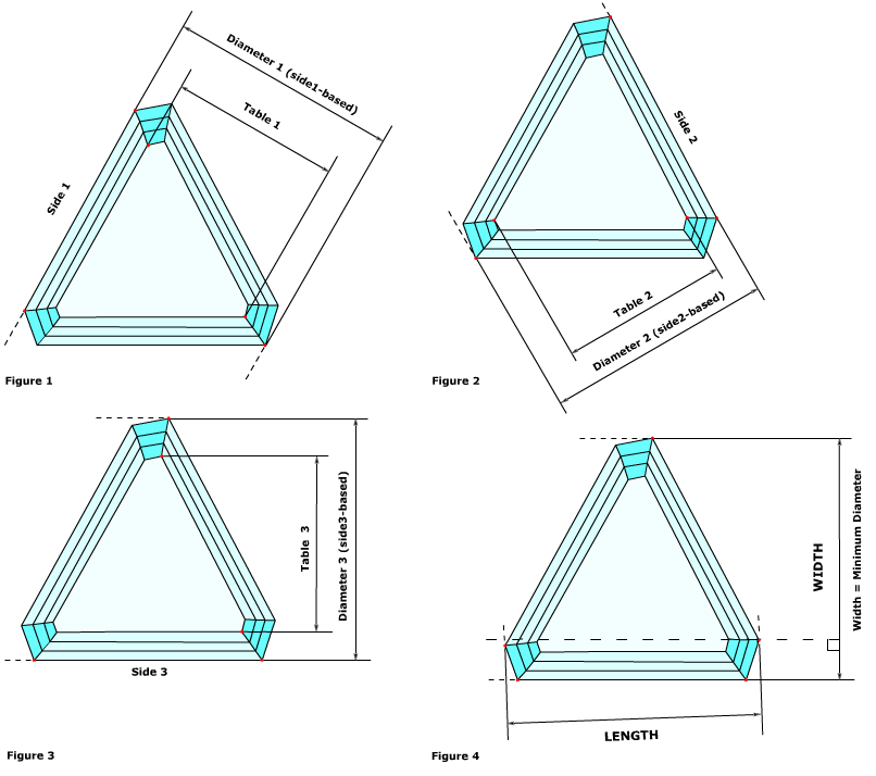 - Diameter (side based) - length along the normal to the side of triangle (figure 1, 2, 3)