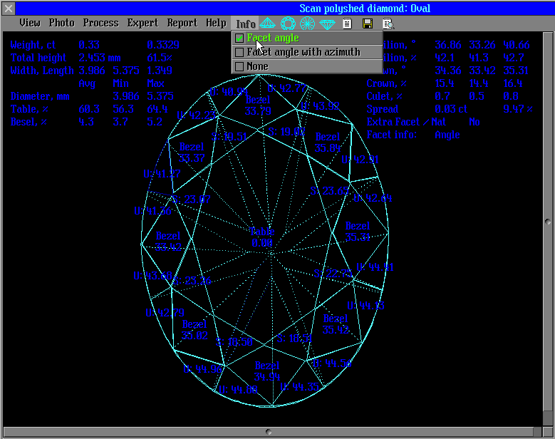 - Girdle facets angles and azimuths are available for brilliants and rounded fancies