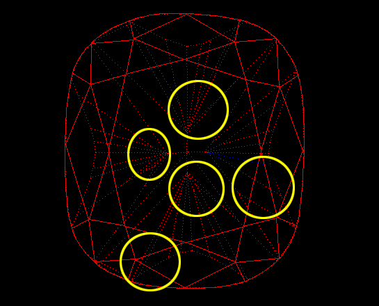 For example, on the picture measurements of Girdle thickness Corner Red maximum and Girdle thickness Corner Length Yellow maximum are illustrated: