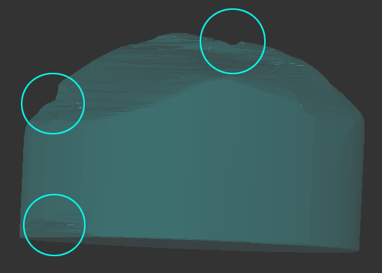 New algorithm for autocalibrating of HP scanner during process of scanning is available. The algorithm ignores flashes and mess while constructing models. It allows constructing correct models of stones in cases it has flashes and mess, for example: