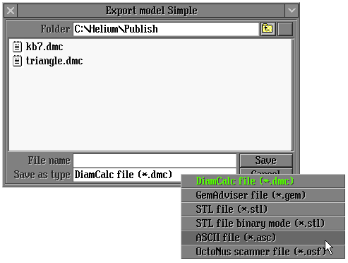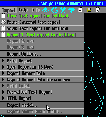Model export to the ASCII format is available in the Scan polish diamond panel from the Report / Export model... section. In previous versions, saving a model as ASCII was possible by Autosave options only. (Autosave options are available in panel Options tab Polish that opens from the Start / Inner / Options… menu.)