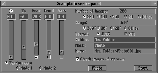 Note: The format of photos is defined in the Scan Photo series panel, in the Format section. Check box JPEG or BMP. The default format is JPEG.