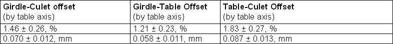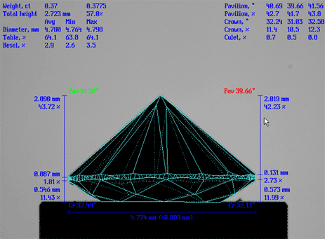 table, bezel girdle thickness, pavilion angle and depth, crown angle and height, culet size.