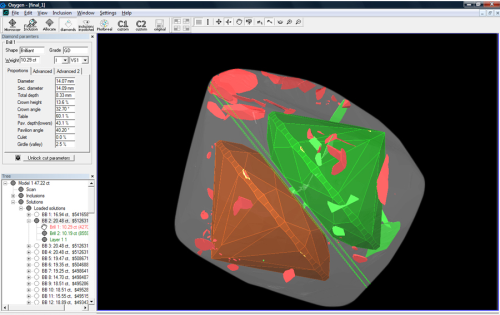 If the suggested plan includes the inclusion, the machine software will show you where that inclusion will be reflected in the polished piece. The Software will grade the finished stone based on size of inclusion left inside the polish stone, its orientation and its reflection / refraction inside the polish stone. Model building accuracy of better than 0.005 mm makes this possible.
