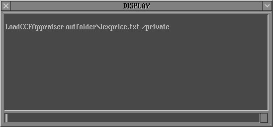 - Run "LoadCCFAppraiser outfolder\lexprice.txt /private" in the command line of the panel DISPLAY