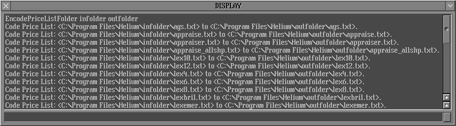 - Run command "EncodePriceListFolder infolder outfolder" in the command line of the panel DISPLAY