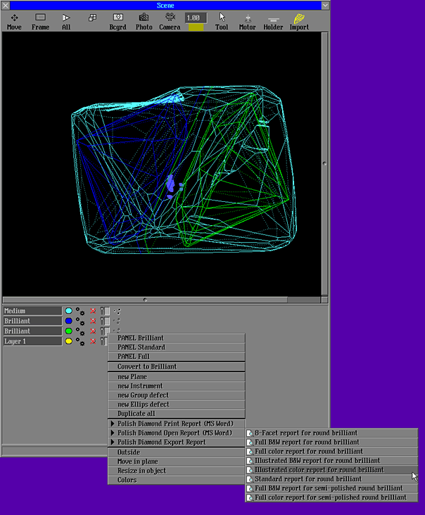Reports for optimized diamonds in the Helium Rough / Pacor (format of Helium Polish for scanned diamond) are available. Now it is possible to create different kinds of reports and export data for Brilliant, Prince, Princess-3s, Emerald, Baguette and Square baguette..