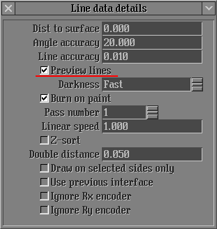 It is be able switch on/off Preview draw lines. Press button Details... in the panel Marking Out / Process. The panel Line data details will be opened. To use the Preview panel and the marking line adjustment algorithm select Preview lines option: