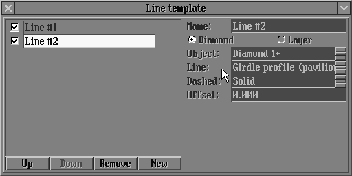 New types of marking line Girdle profile (crown) and Girdle profile (pavilion) are available. These types of line set as default instead of Girdle curve and you can set back Girdle curve line in the Line template panel.