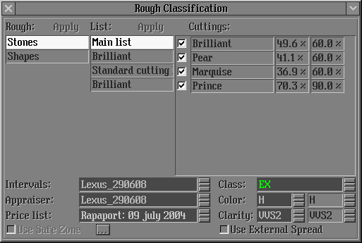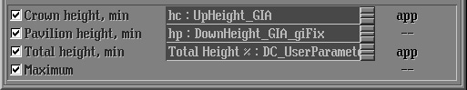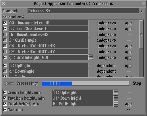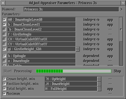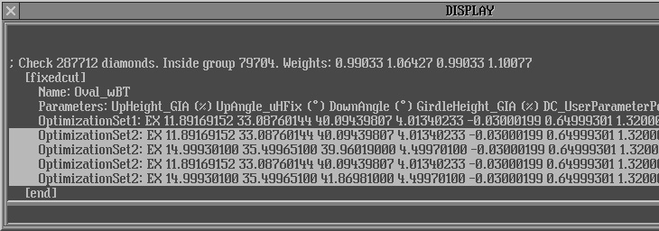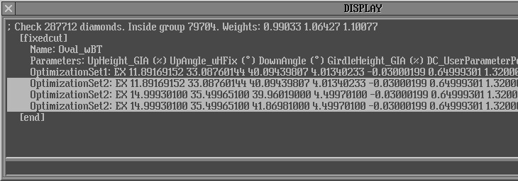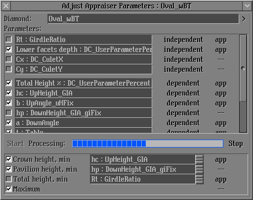 - Important notice! Parameters Rt:Girdle Ratio and Culet shifts should not be included into calculation. These parameters Rt:Girdle Ratio and Culet shifts (Cx:DC_CuletX and Cy:DC_CuletY) must be switched off in the Parameters list: