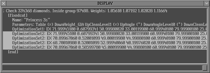OptimizationSet2 contains parameters for Fixed cut 1, Fixed cut 2, Fixed cut 3 and Fixed cut 4. It is used in the algorithms finding two diamonds in solutions.