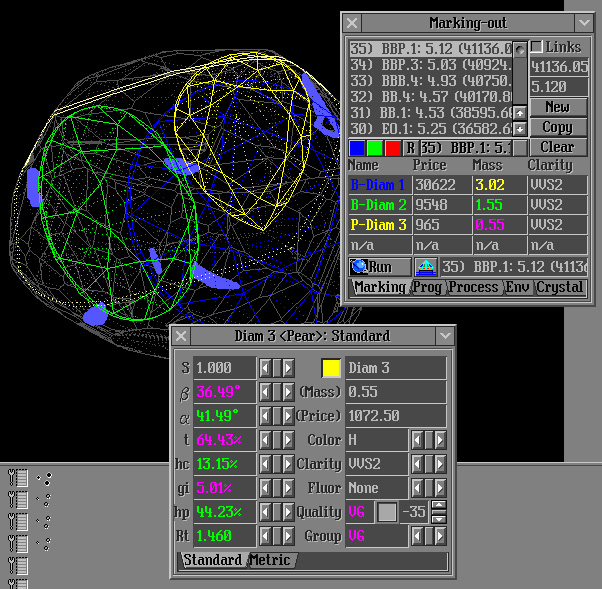 - Four diamonds in solution are displayed in Marking Out panel