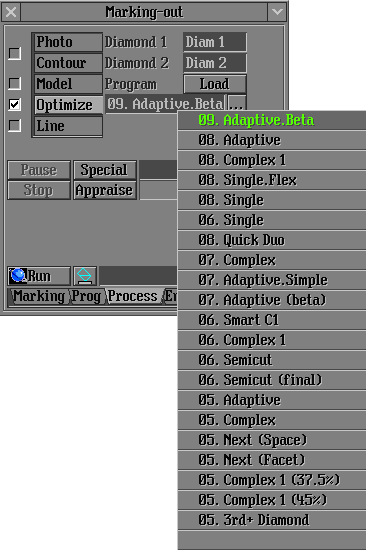 - In the panel Marking out on the page Process, section Optimize right click on the algorithm and select required new algorithm.