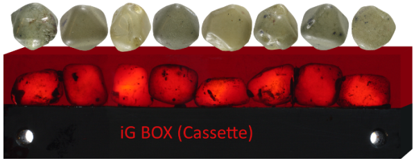 around 100°C. We can heat Immersion Glass and Diamond in cubical mold so glass and diamond will become a single entity and reflections of inclusions will be removed. Due to absence of reflections, plotting on M-Box is more precise, very easy and can be done by even non-experienced operator. |